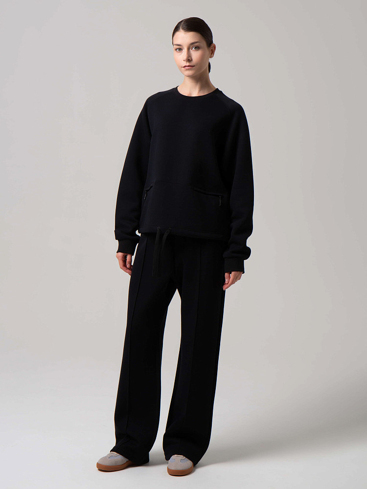 Применение технологии Sorona наделяет этот материал такими свойствами как лёгкость, эластичность, износостойкость и мягкость, всё что нужно для комфортного использования на каждый день. Способствует оптимальной терморегуляции, дышит и сохраняет тепло. Обладает антибактериальными свойствами, препятствует образованию неприятного запаха. Также используется технология 5А, которая обеспечивает ответственное производство без вреда для природы и безопасное использование для людей. Такой материал обеспечит комфорт в прохладную погоду. Свитшот идеально сочетает в себе удобство и модный молодежный стиль. Классическая модель с минималистичным логотипом универсальна для разных случаев — будь то прогулка по городу, офис, встречи с друзьями. Удобные карманы позволяет хранить мелочи, и несут декоративную функцию. Кулиска с шнуром по низу изделия дарят неформальный стиль классическому свитшоту.